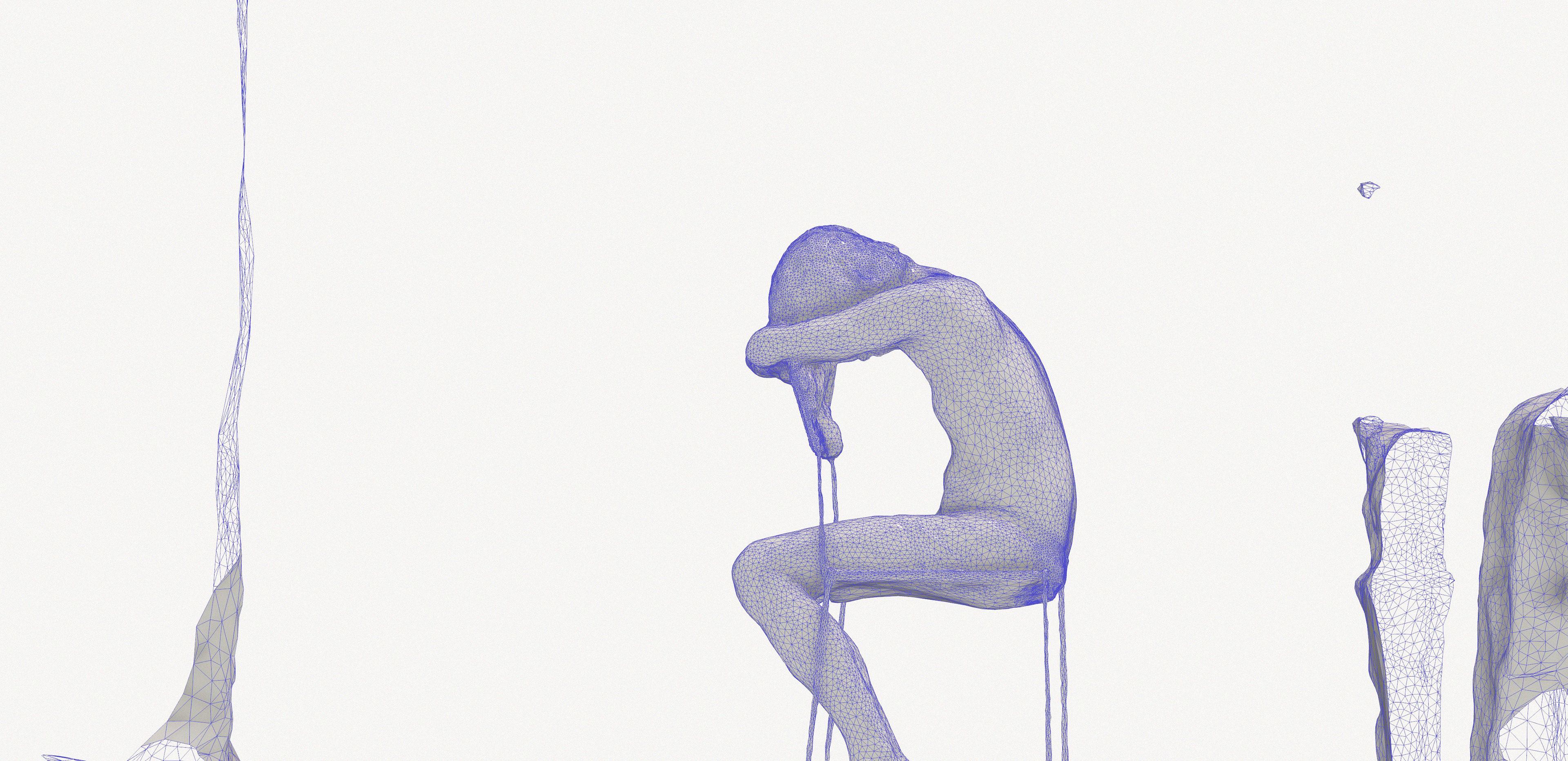 Accompanying article "Sechs Punkt Eins Zoll" by Fatima Njoya on the topic of loneliness epidemic.