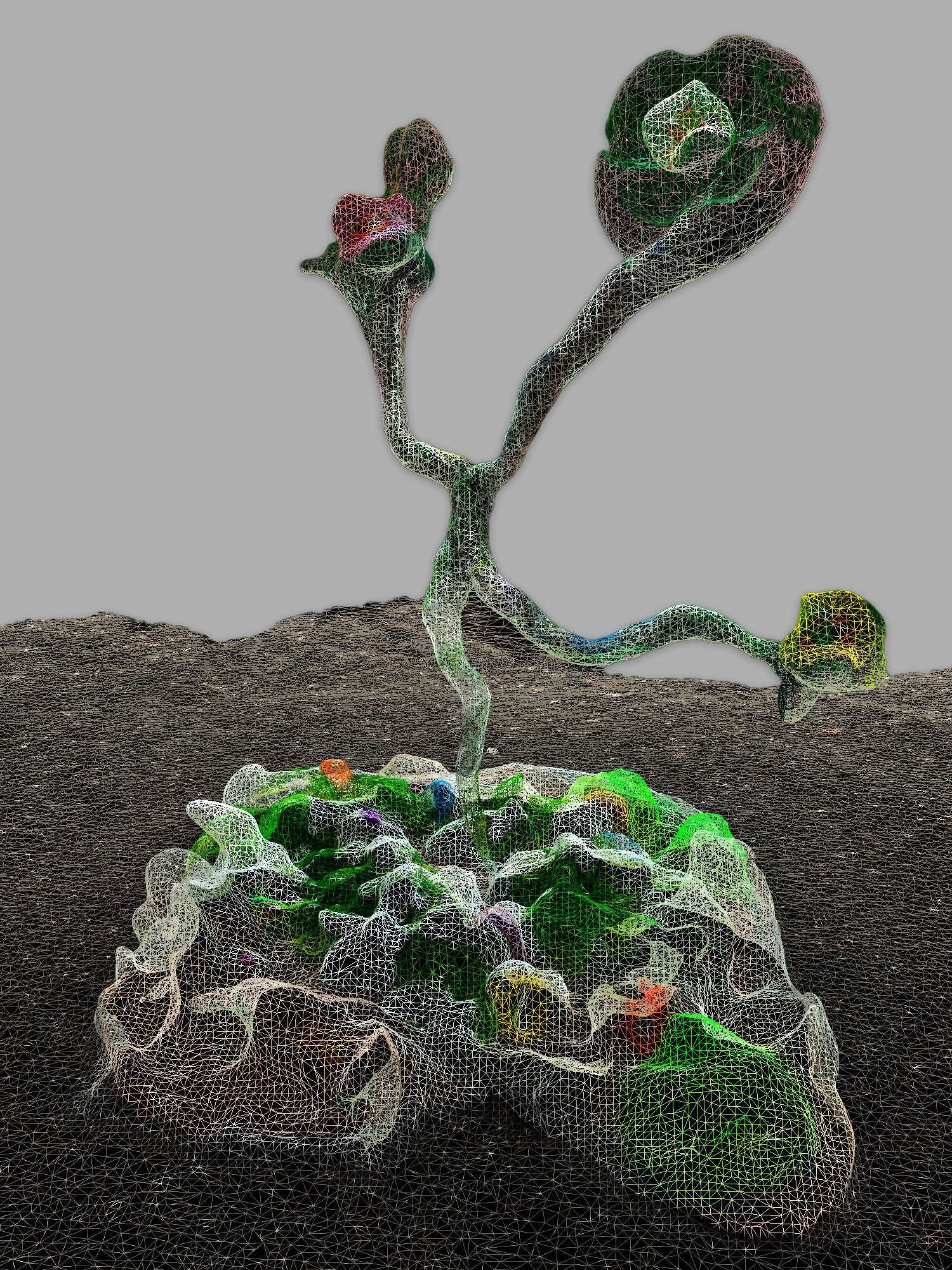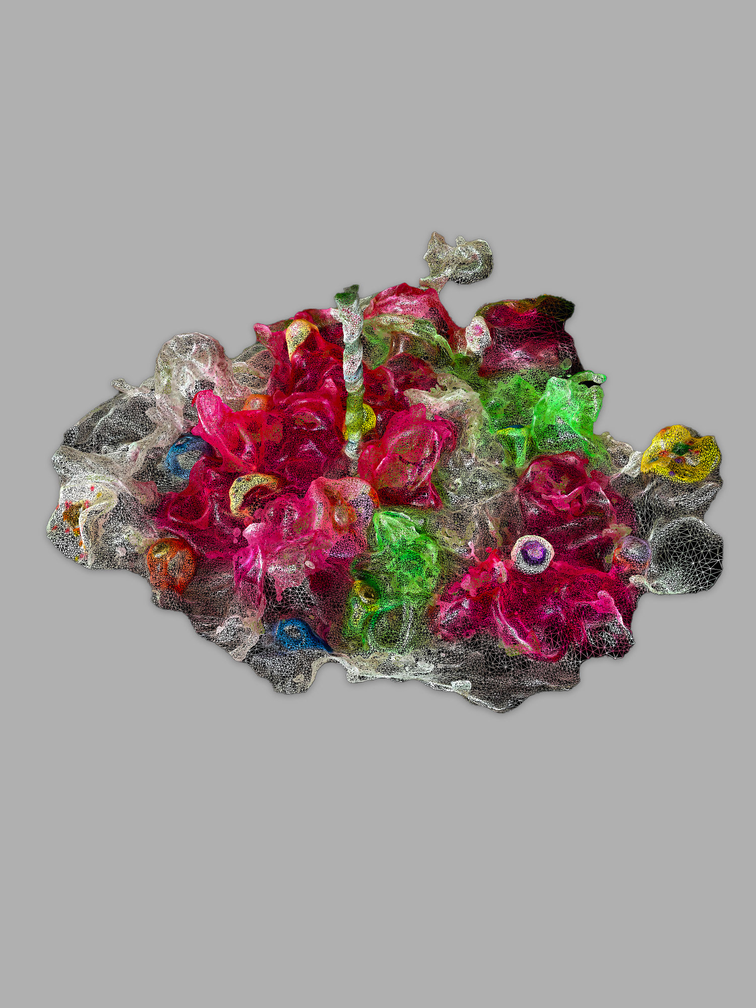 The arrangement consists of upcycled jewelry. Through the use of 3D scans, the still life is transferred into a digital space, where it experiences a new form of transience and value.